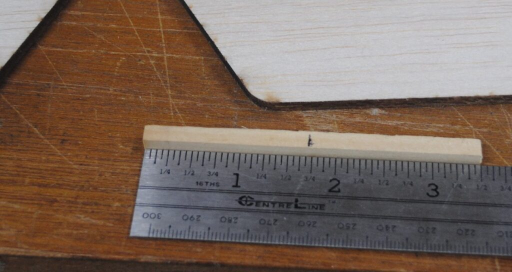Mark the center of the 1/4 x 1/4 x 3.5 inch hard wood elevator joiner.