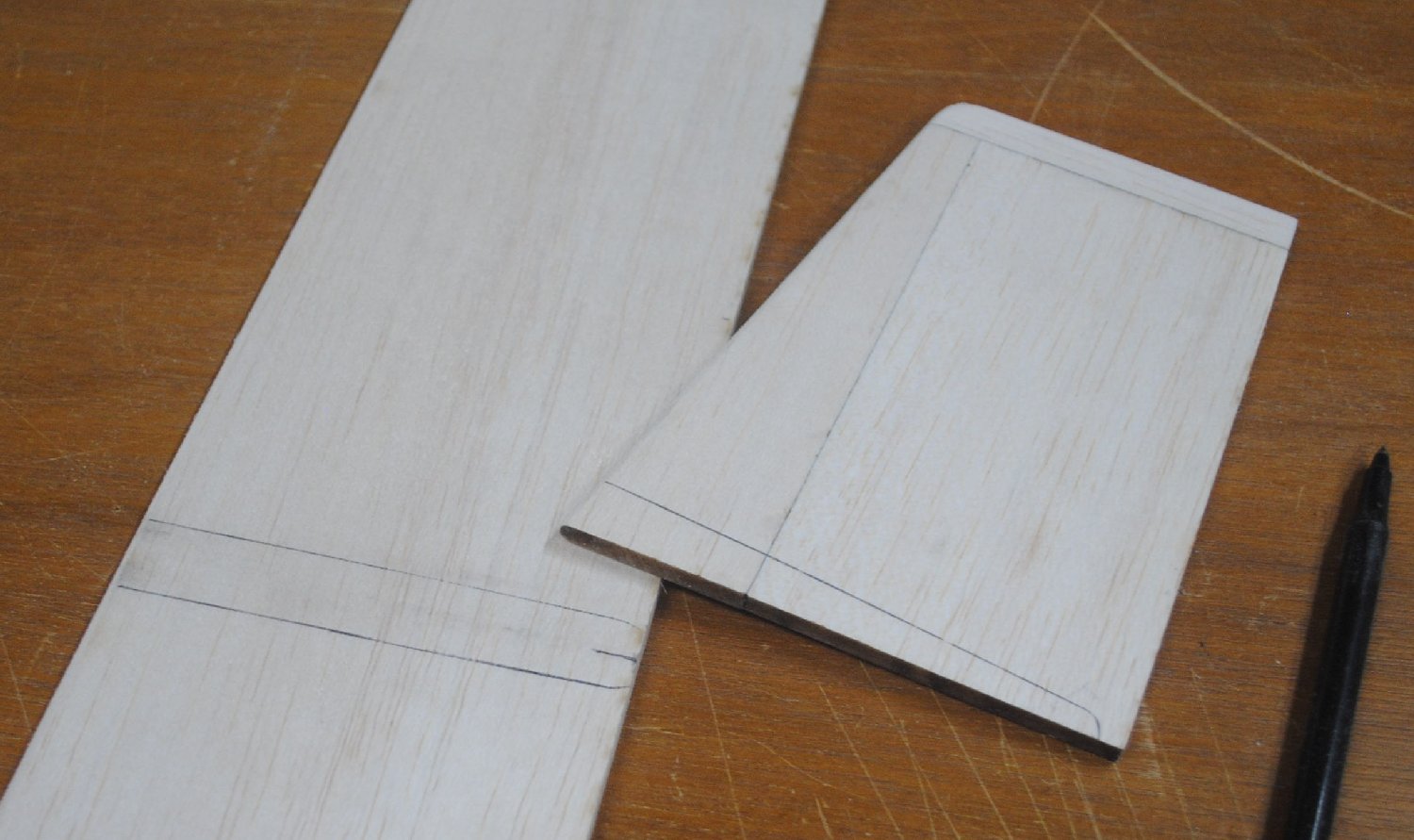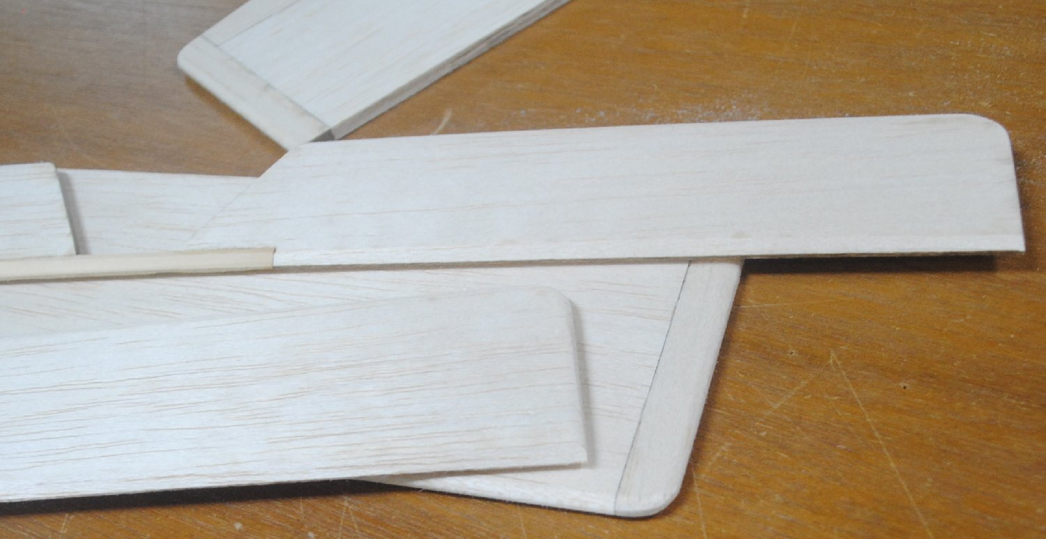 The vertical and horizontal stabilizers, should be rounded at the tips and the leading edge. The trailing edges should be left flat.