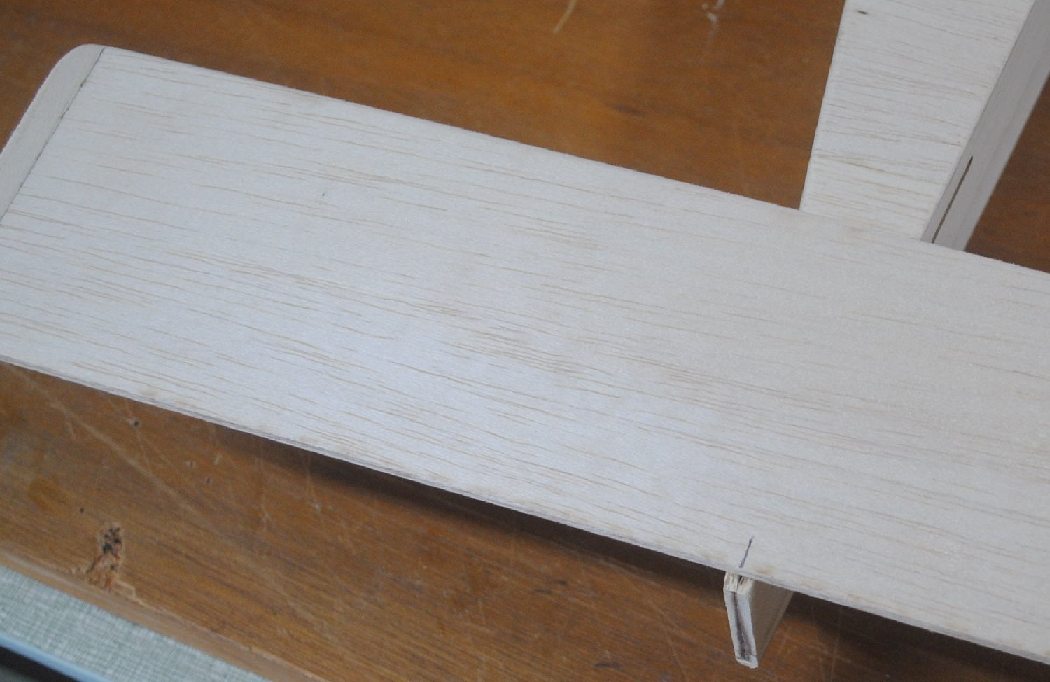 Sand the faces of the vertical and horizontal stabilizers to make sure the joints are even and there aren’t any glue chunks sticking up.