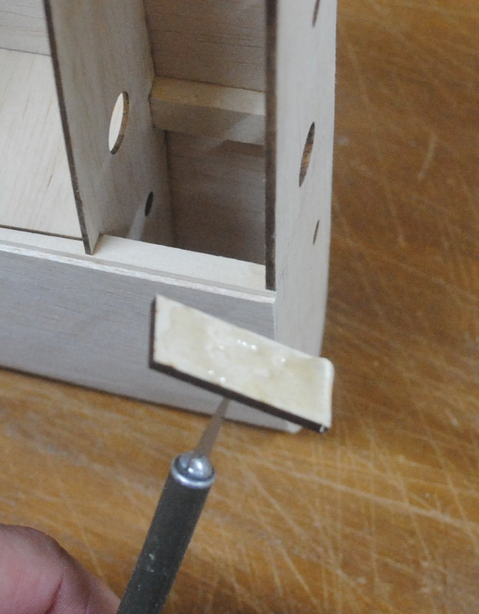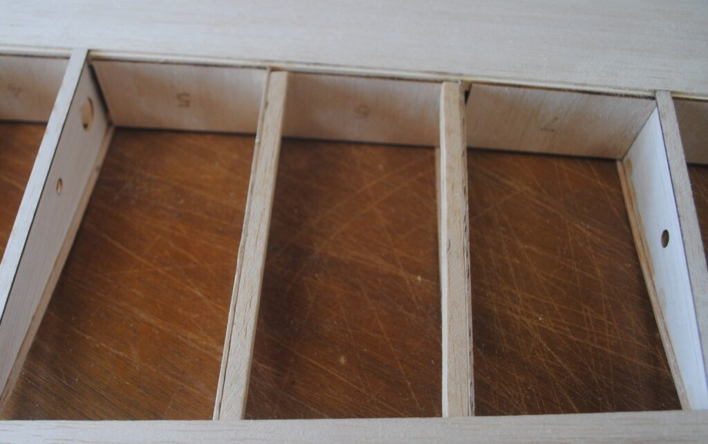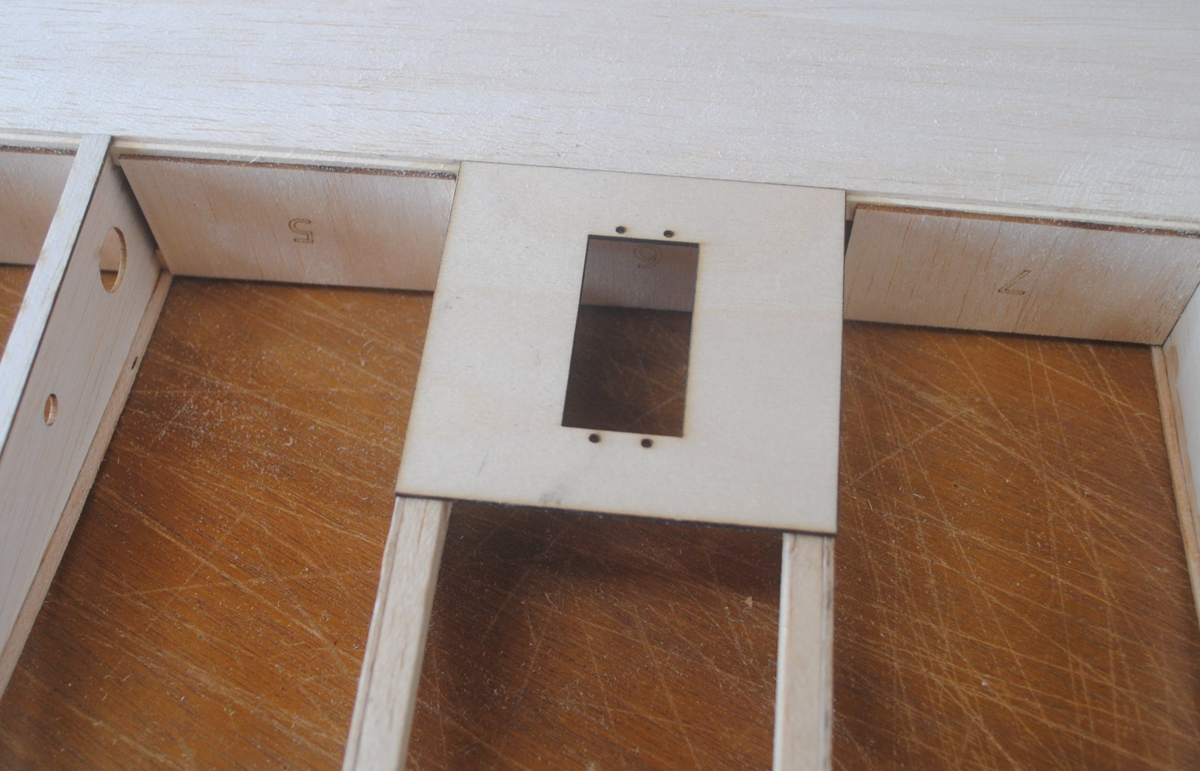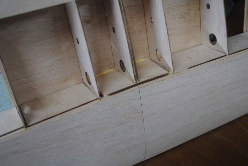 Attach the 1/4 x 1/4 balsa sticks to the ribs in the servo bay. In this case the sticks are inside the servo bay.
