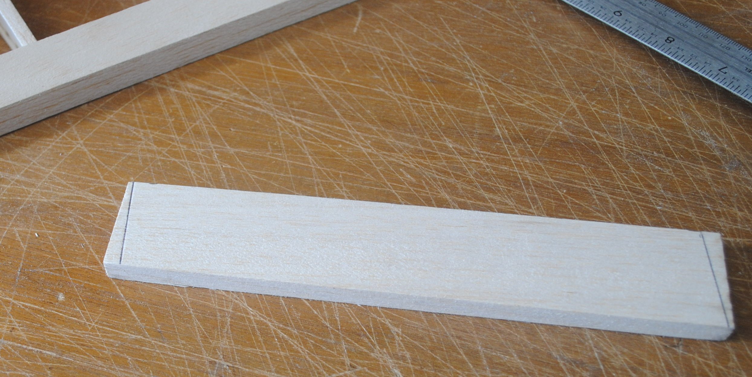 Use a ruler and pen to mark the balsa at an angle to match the root rib.