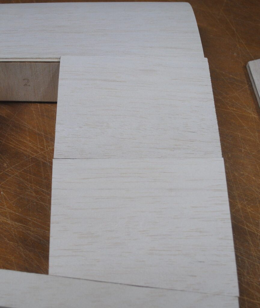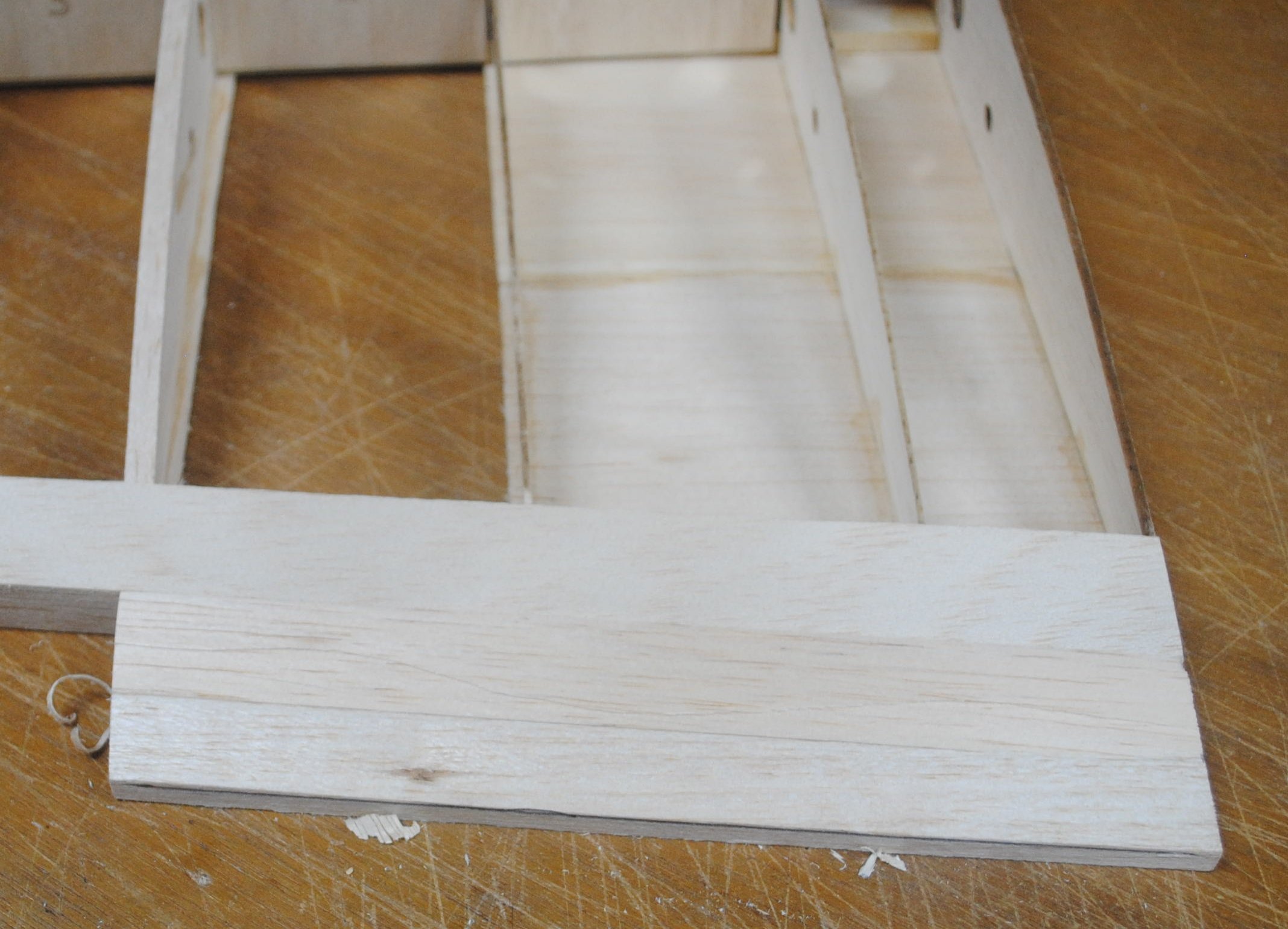 Attach the sheeting at the rear, but not the piece next to the spar. Sand the sheeting and trailing edge assembly flush with the face of the root rib.