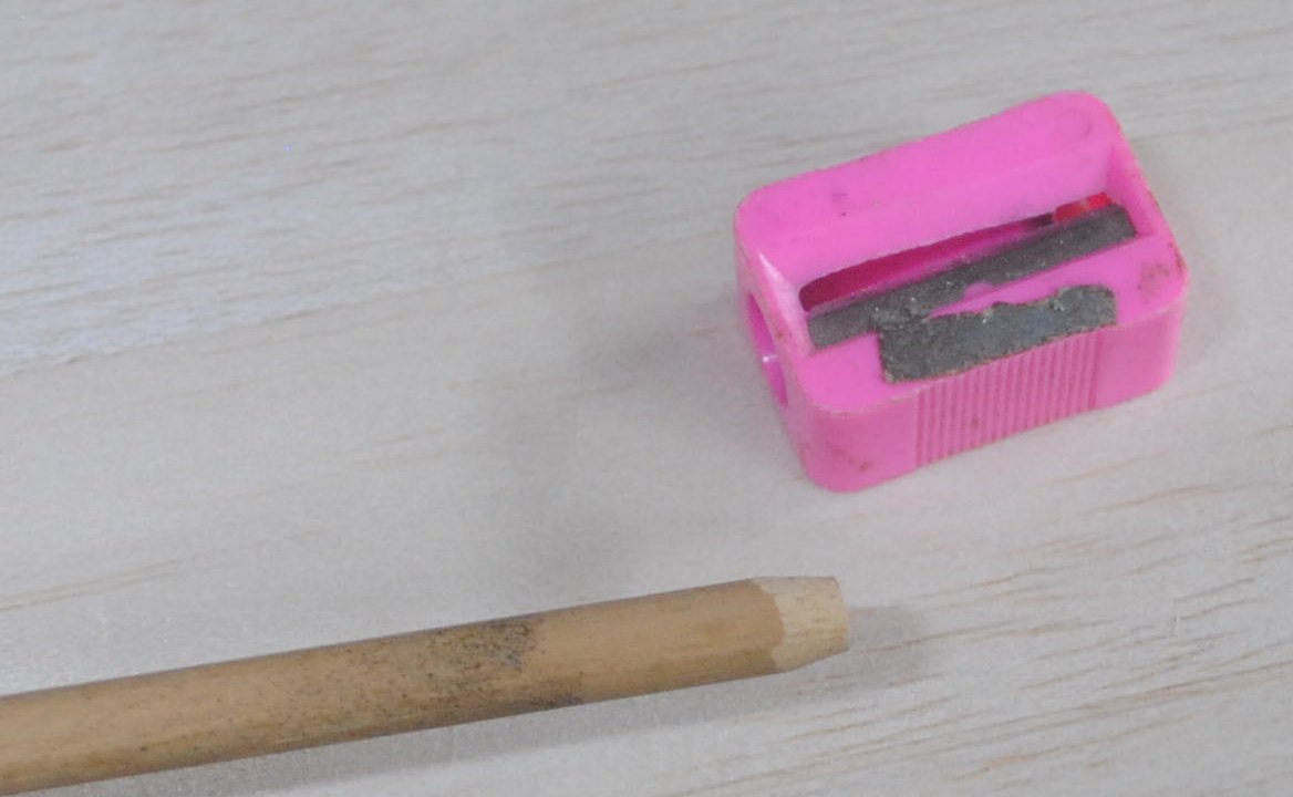 Cut two 1/4″ dowels 6″ long. Use a pencil sharpener to chamfer the ends, or use a sanding block.