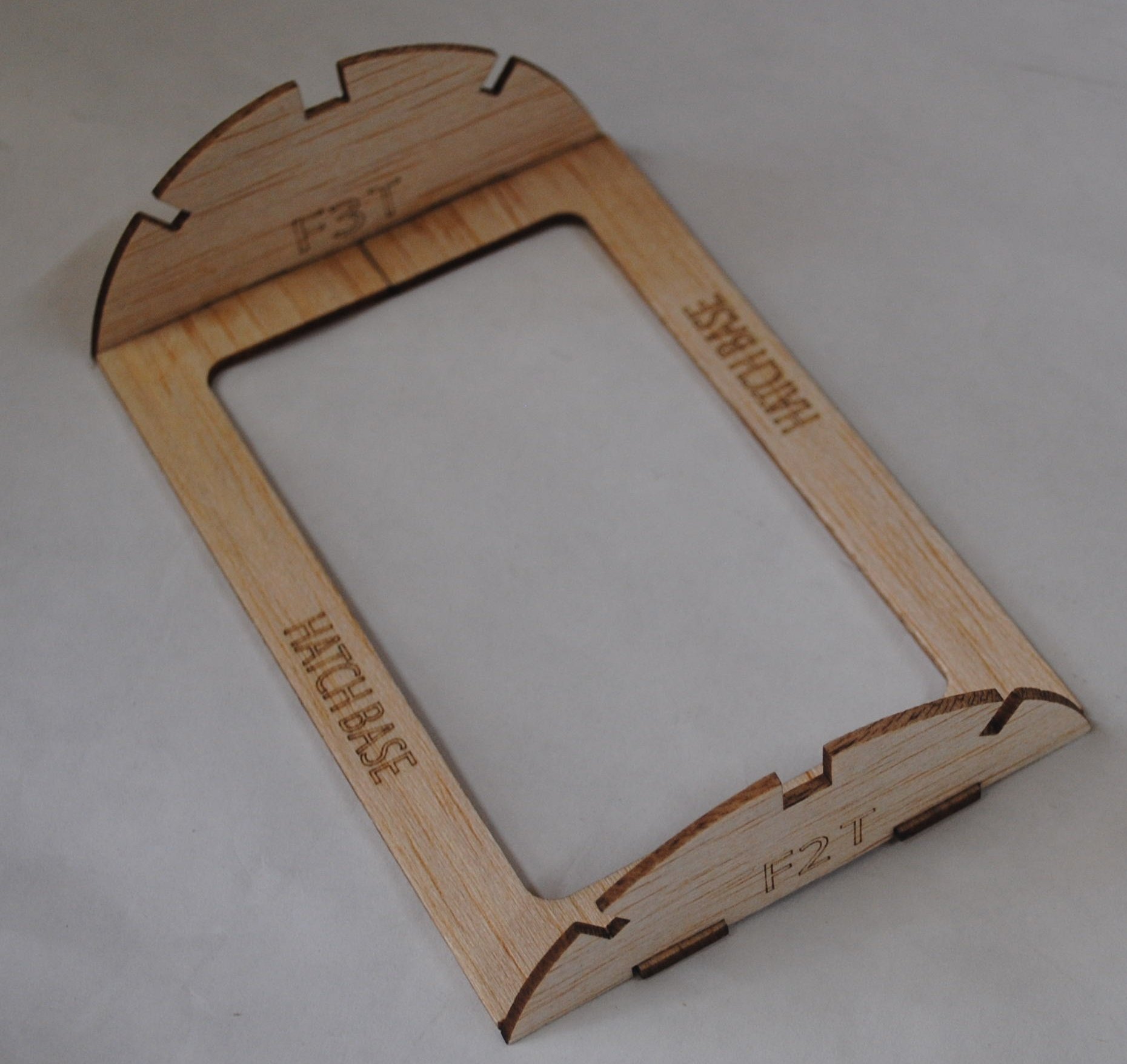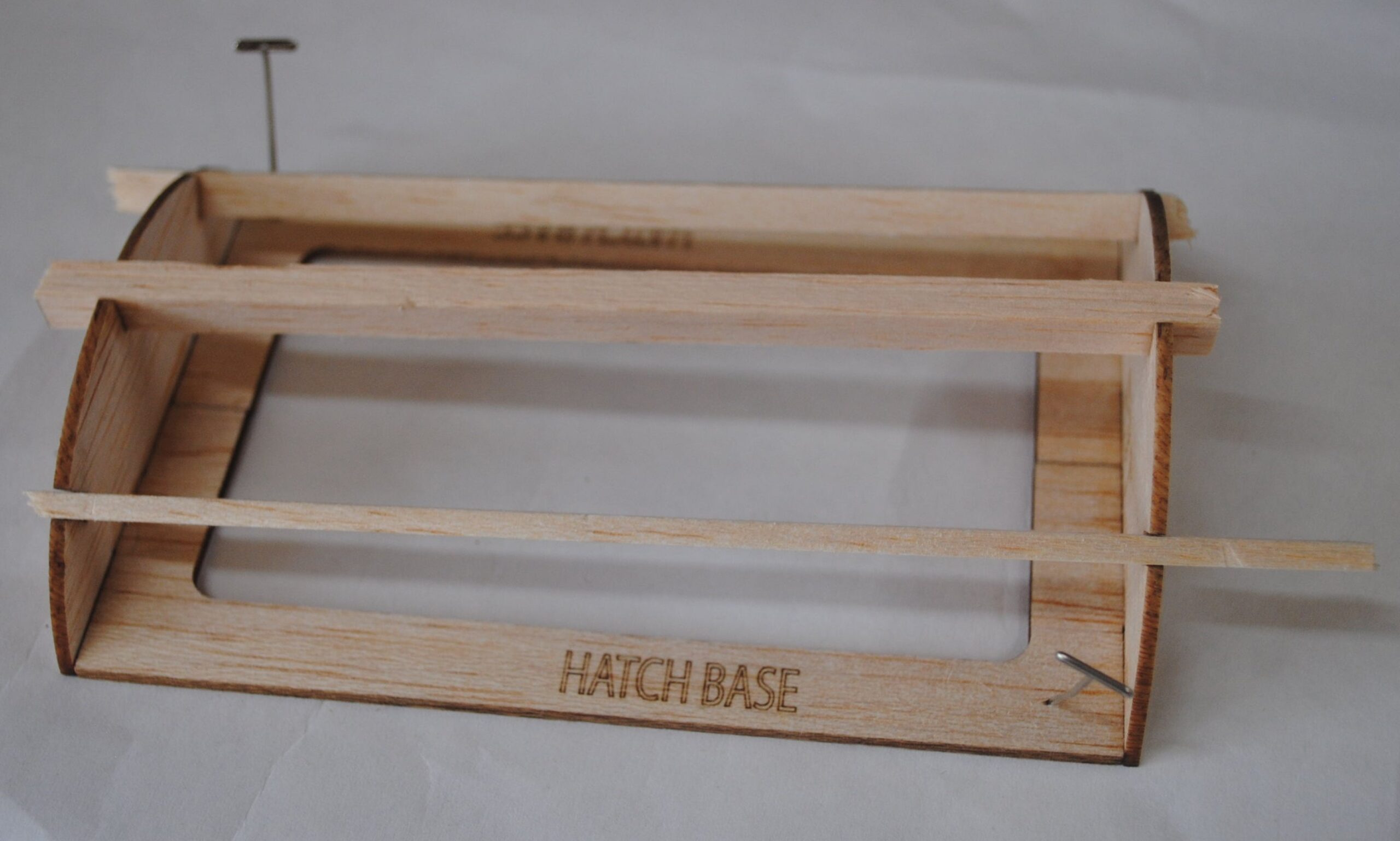 If you built your plane with a short deck to accommodate a hatch, the next step is to build the hatch. F2T and F3T are attached to the hatch base, sticks are attached in the notches, and the sheeting is attached to the top by following the same steps described in the instructions for building the basic deck.