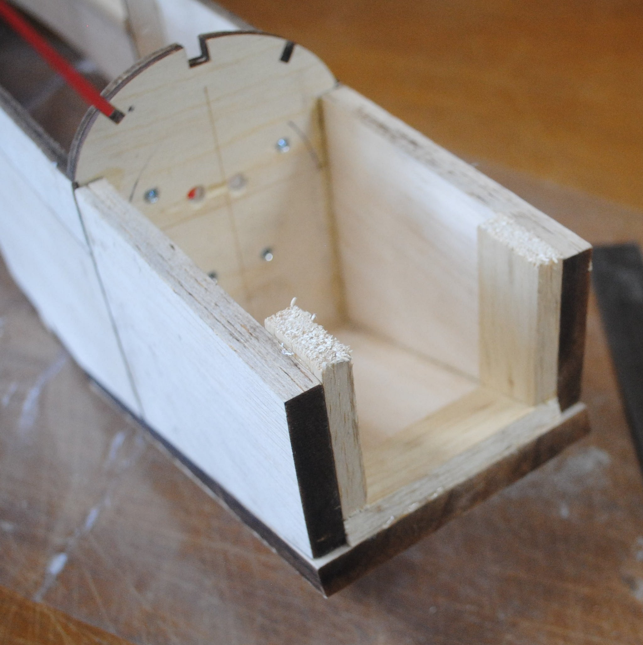 Now that the bottom is on, the inside of the tank compartment can be fuel proofed. You can use dope, thinned epoxy, finishing resin, or whatever fuel proofing you like.
