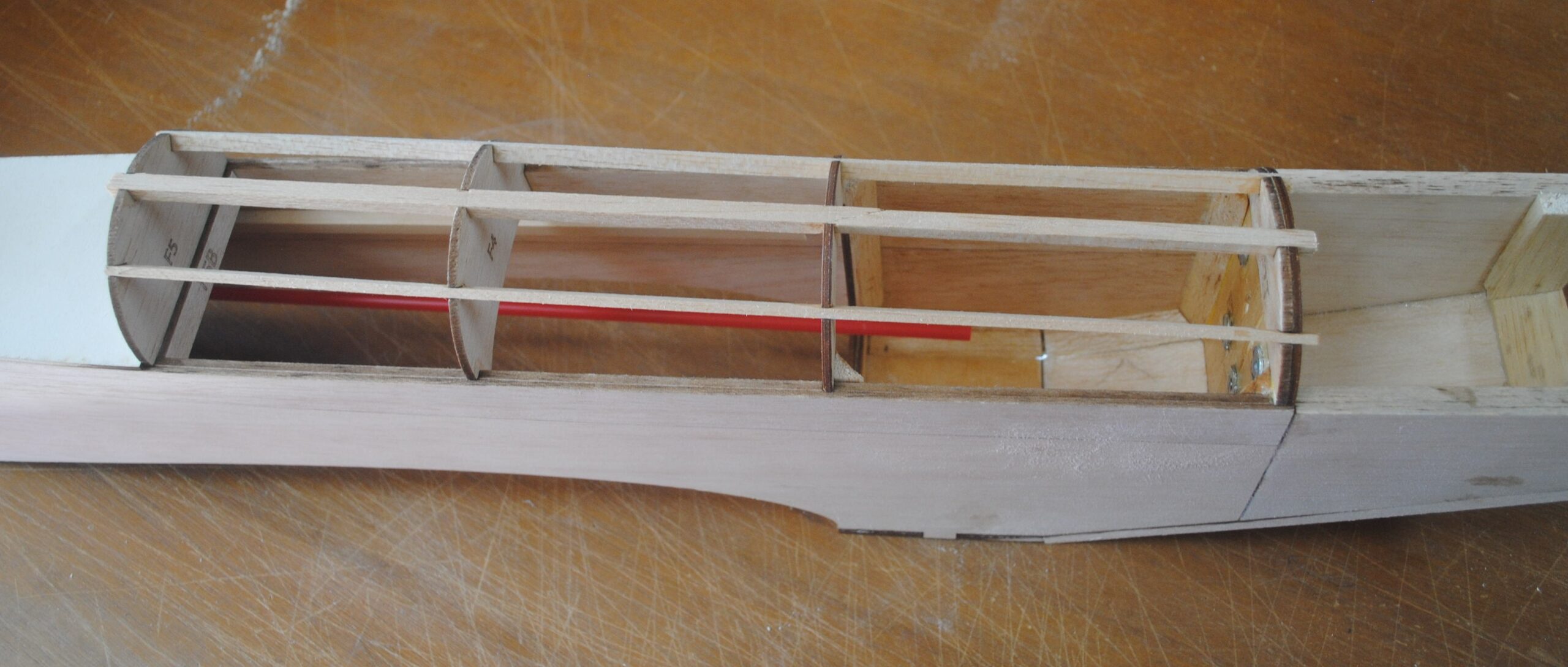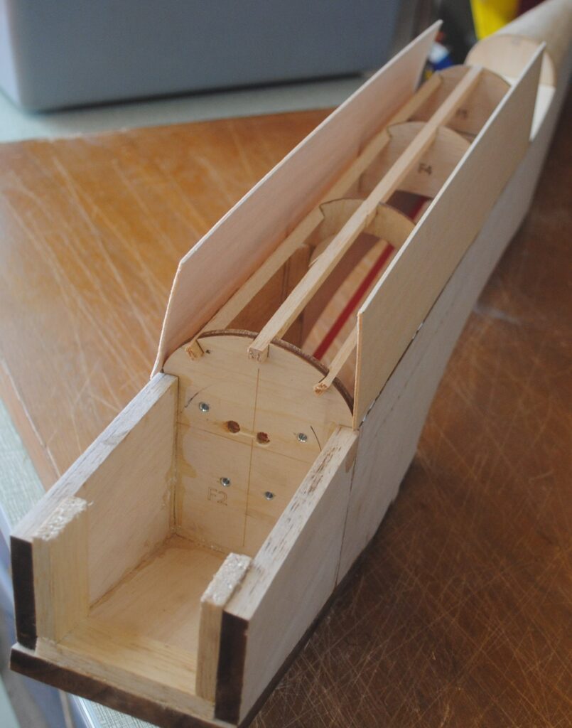 Glue the sticks into the top notches of F2 through F5. 1/4 x 1/4 balsa goes in the top, and 1/8 x /14 balsa goes in the other two notches.
