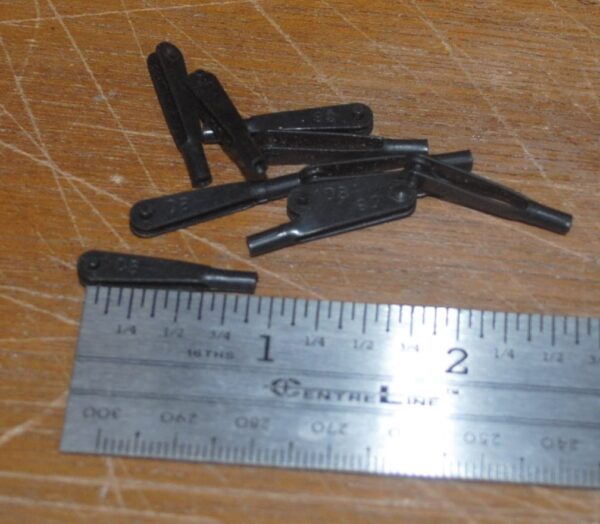You are buying ten DuBro black metal threaded solder clevises to be used with 2-56 rods. These are left over from kit production at Ace RC.
