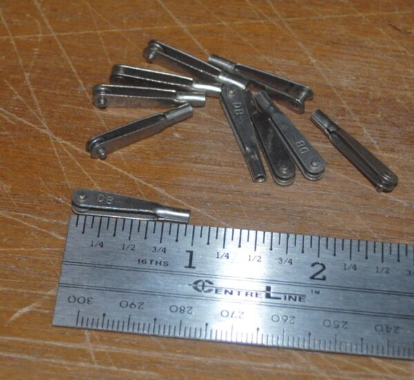 You are buying ten shiny metal non-threaded solder clevises to be used on the non-threaded end of a 2-56 rod. These are left over from kit production at Ace RC.