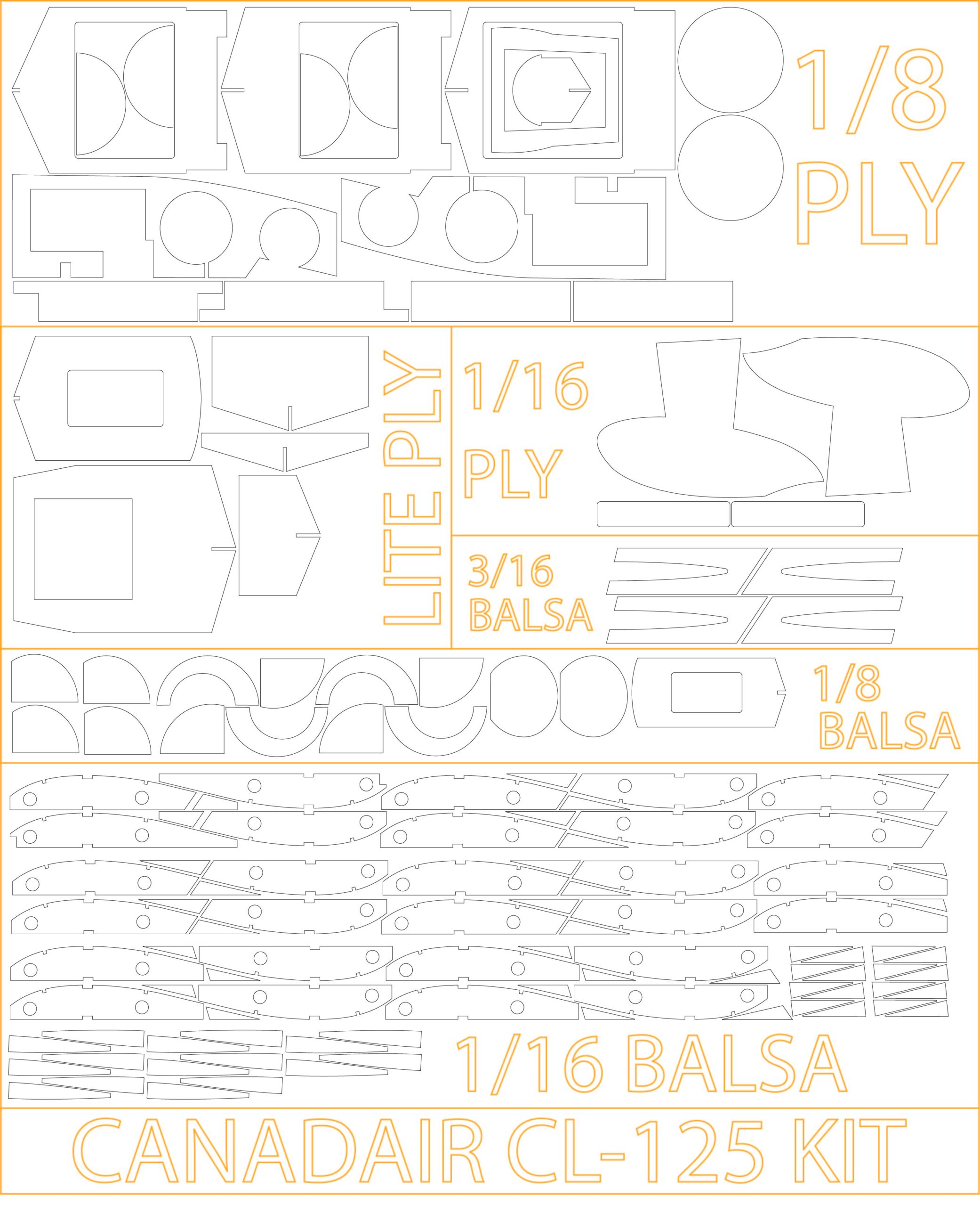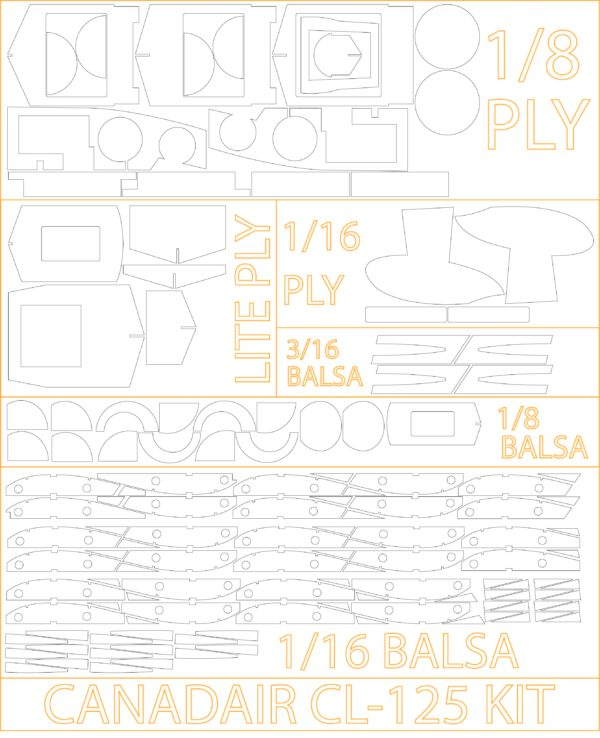 This kit includes ribs, fin parts, nacelle parts, fuselage formers. It’s basically the same kind of thing you get with the other short kits, except it doesn’t include fuselage sides. These are just giant sheets of balsa, mostly square, and the only thing they do for you is increase shipping charges to Canada, which is where I always send this kit. Go ahead and cut these yourself. It’s easy because there are no curves.