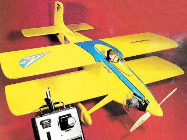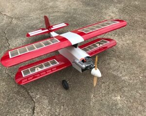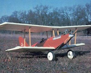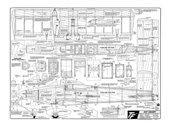 This plan came from the old Top Flite kit, which has been out of production for quite a long time now. It’s a high performance pattern type biplane with symmetrical airfoil. The short kit contains surprisingly few parts. There are fuselage sides, wing ribs, a couple of bulkheads, and the tips of the vertical and horizontal stabilizers. The stabilizers, control surfaces, and most of the fuselage framing and doublers are to be made from your own stock materials.