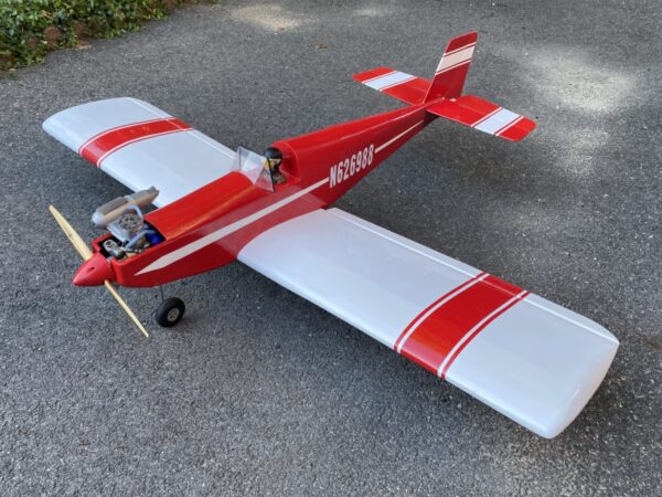 40 size plane from RCM that looks kind of like a real airplane, and flies great.  Download your plan from Outerzone, because that’s the version that matches this kit.  If you find a Negotiator plan that has a blank stripe down the middle, don’t use it.  The scaling is off.