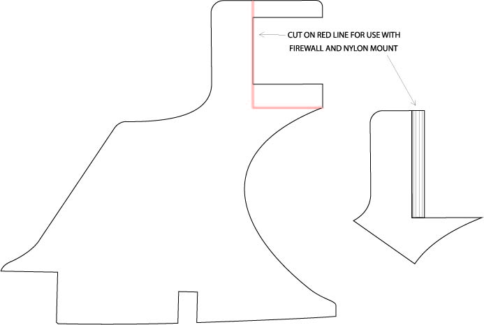 On the plan the engine pylon has a U-shaped cutout for a side mounted engine. You can cut the pylon on the red line as shown in the diagram below, and install the included firewall on the front of the pylon, for mounting your engine on a standard nylon mount.