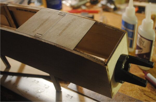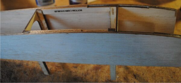 • Fill the space between the top and bottom trailing edge sheeting in the center section with scrap balsa before you make the trailing edge cutout above the cockpit.