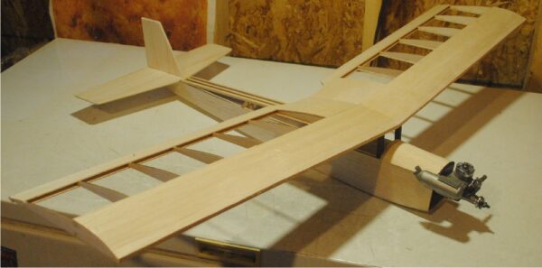 • Another alternate wing is available with ailerons.  Dihedral is 1/2 of the figures quoted for the regular wing.  Trailing edge stick is 1/4″ balsa.