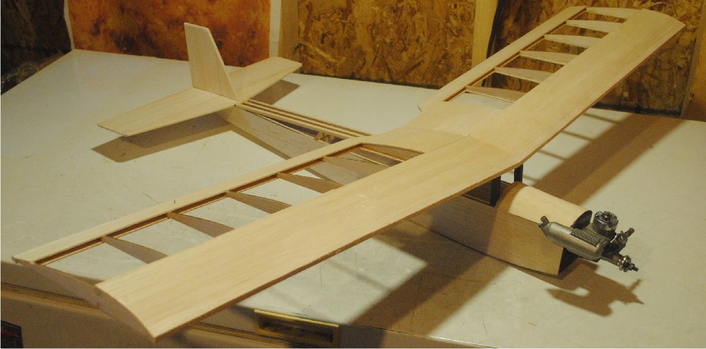 • Top fuselage stringer is 1/8 x 1/4, and the bulkheads are notched for easy placement.