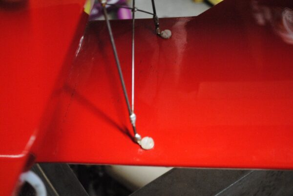The gallery photos include an old Sporty Ace that a guy found, which the builder unfortunately never got a chance to fly. He says it flies great with a K&B 40. There are also some shots of my red Sporty Ace and the cabane attachment details. For a complete description of how to build these struts, look at my wire struts article. My plane has an OS 52 Surpass and is ridiculously overpowered.