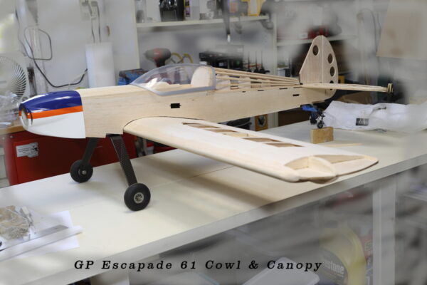 I’ve learned from a customer that the Great Planes Extra 300SP cowl is a pretty good fit for this plane. That’s part number GPMA 3222. It looks like a good fit to me, and I’m certainly excited about the OS 61 FX on the front. He also tried a Great Planes Escapade 61 Canopy, as shown in the third photo. Thanks to Guadalupe Talamantez for the photos.