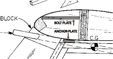 Includes some plywood parts not shown on the plan, for mounting the wing with bolts instead of rubber bands. There are two pairs of 1/8″ plywood rectangles to be laminated to 1/4″ and placed inside the fuselage to receive the bolts. There are also a couple of 1/8 ply rectangles to go in between the ribs in the front of the wing for holding the bolts in the wing. And there is a 1/32 ply plate to go on top of the trailing edge of the wing.